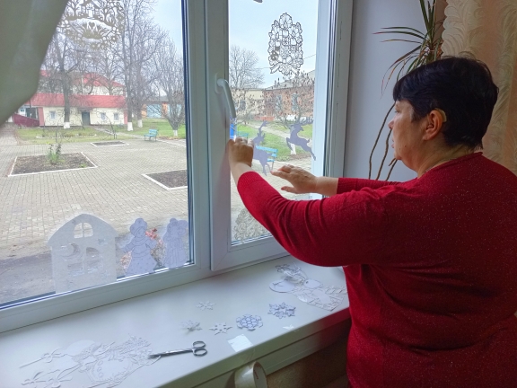 В отделении дневного пребывания полным ходом началась подготовка к празднованию Нового года. Осталось не так уж много времени, поэтому пришло время украшать свои жилища. Вот и получатели социальных услуг направили все свои силы на украшение отделения. Участники кружка «Умелые руки» проявили творческую смекалку и фантазию, задумали сделать все, для того чтобы новогодние праздники оставили приятные воспоминания у них и всех окружающих на целый год.Традиционно в канун Нового года в отделении дневного пребывания устраиваются новогодние представления с участием Деда Мороза и Снегурочки. Поэтому встретить их надо как полагается. Сегодня, 15 декабря 2025 года, активными темпами получатели социальных услуг украсили окна учреждения вытыканками. А впереди еще очень много задумок - красавица ёлка, снеговик, баба яга в ступе и многое другое.